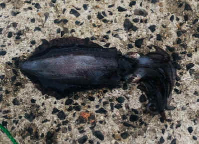 1回だけ当たりがあって,胴長15cmのアオリイカが釣れた。