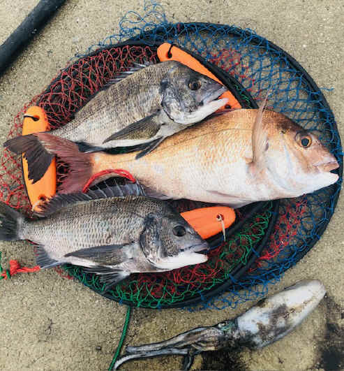 マダイ1尾,(48cm),チヌ2尾(35cm級),アオリイカ