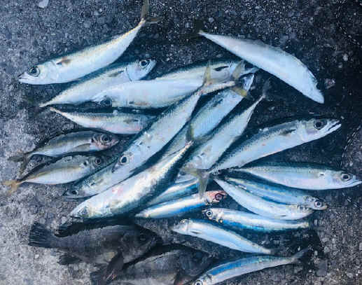 サバ(23〜28cm)=13尾,ウルメイワシ=7尾,アジ(20cm)=2尾,メバル(21・23cm)=2尾